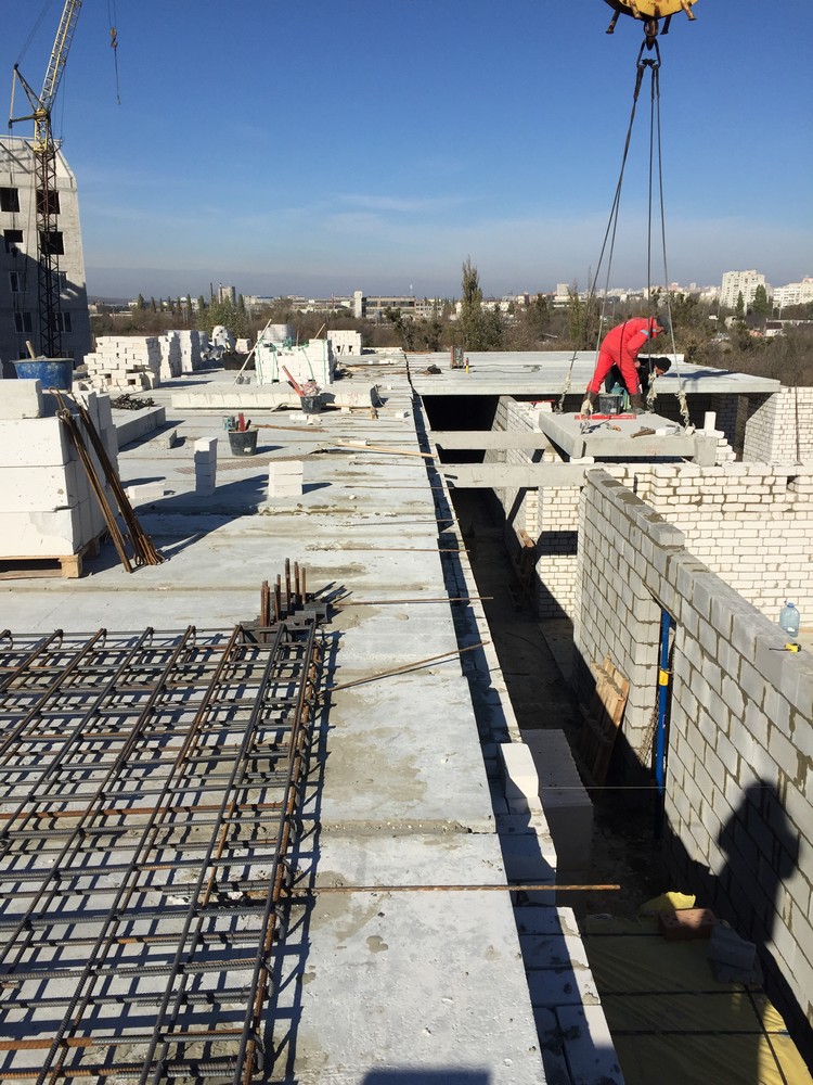 - возводятся несущие стены шестого этажа с монтажом оконных перемычек;