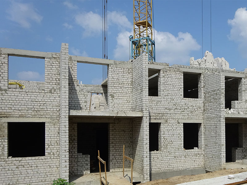 Дом 2 – выполняется кирпичная кладка 8-го этажа.