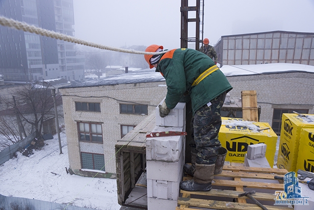 Во 2-й секции ЖК «Оптима» сегодня забетонированы две трети перекрытия над 3-м этажом. Оставшаяся часть перекрытия будет залита бетоном в четверг, 13 февраля. Каменщики завершают кладку внутренних перегородок в подвале и на 1-м этаже. Выполнена кладка наружных стен 3-го этажа