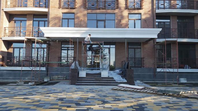 - полностью готов подземный паркинг (есть освещение, уложили тротуарную плитку, отштукатурены стены),