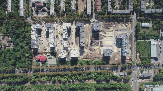 - Дома 12, 14А, 14Б - кладка 12 и 14 кладка - 100%, устройство кровли не окончено,14Б – кладка 95%; внутренние работы: 12 – штукатурка 50%, монтаж окон 25%, 14А – отделка не начиналась, 14Б – штукатурка до 8 этажа; фассадные работы: 12 – фасад 50%,14А,Б – фасад не начинался