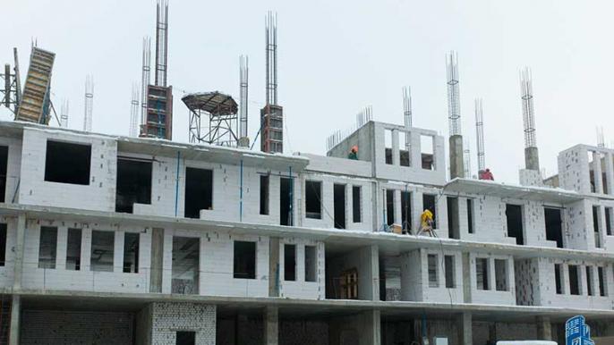 В 4-й секции на 4-м этаже забетонированы вертикальные конструкции, завершается кладка наружных стен.