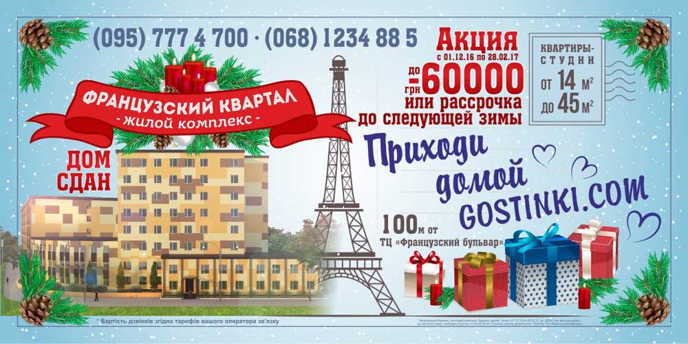 Скидка 60000 тыс. грн. на жилье в ЖК "Французкий квартал"!