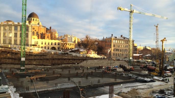 14 декабря 2013 года на объекте ТРЦ Никольский в г. Харькове по ул. Пушкинская 2 было залито 3 тыс. кубических метров бетона фундаментной плиты.
