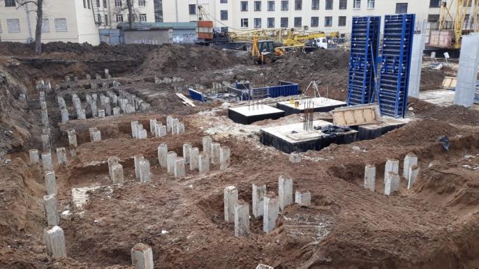 Как сообщили СтройОбзору в компании Marshal Development на строительной площадке ЖК «Брюссель» проводятся работы по устройству вертикальных элементов колонн и лестнично-лифтового блока второй секции цокольного этажа. Устройство обмазочной и клеевой гидроизоляции паркинга. Разработка свайных полей для устройства ростверков третьей секции. Устройство опалубки монолитного железобетонного перекрытия над цокольным этажом первой секции.