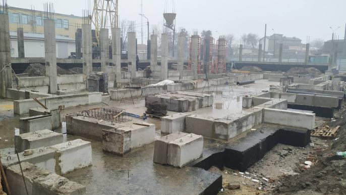 В 8 секции начата кладка несущих стен 9-го этажа.