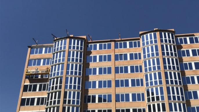 В 6 секции продолжаются внутренние отделочные работы, начата шпаклевка стен;