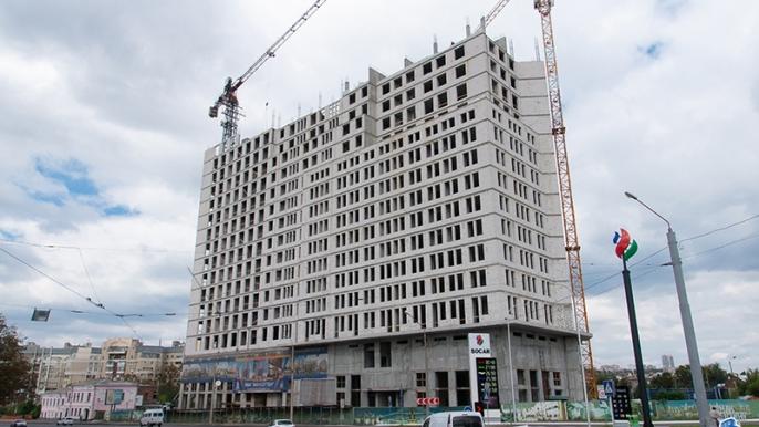 В первой секции МФК “Манхэттен” устанавливают вертикальные конструкции шестнадцатого этажа