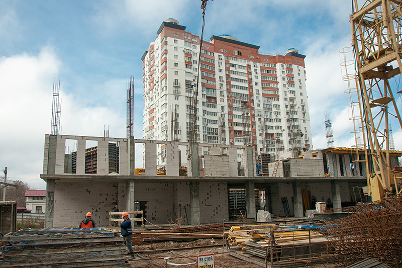 - В пятой секции завершены работы по кладке внутренних стен. Забетонировано покрытие вентиляционной камеры. Начаты работы по устройству кровли. Продолжается остекление секции.