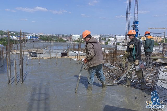 Строители СМУ-25 ОДО «Жилстрой-2» выполнили работы по устройству перекрытия над 11-м этажом. Забетонирована половина вертикальных конструкций 12-го этажа, эти работы планируется завершить на следующей неделе. Начинается монтаж опалубки перекрытия между 12-м и 13-м этажами.