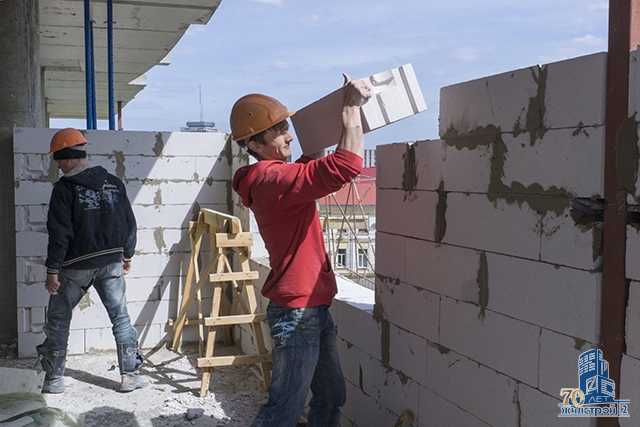 На 7-м этаже ведется кладка наружных стен и внутренних перегородок. В ближайшие дни также начнутся кладочные работы на 8-м этаже.
