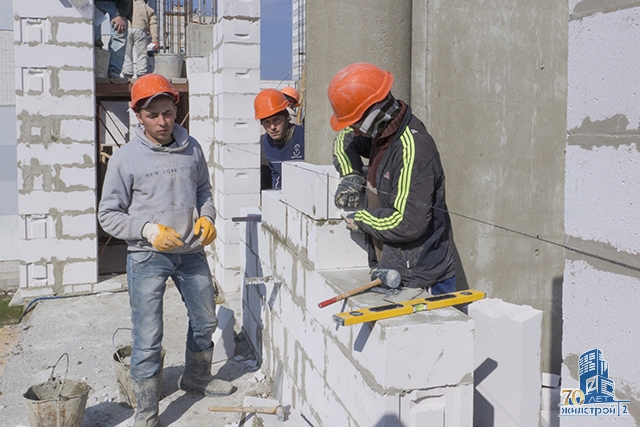 Строители СМУ-21 ОДО «Жилстрой-2» в течение последних 9 дней завершили бетонирование вертикальных конструкций и кладку наружных стен 3-го этажа, а также кладку внутренних перегородок на 1-м этаже. Сейчас кладка внутренних перегородок ведется на 2-м этаже. Забетонировано 2/3 перекрытия над 3-м этажом, завтра работы по устройству перекрытия будут полностью завершены.