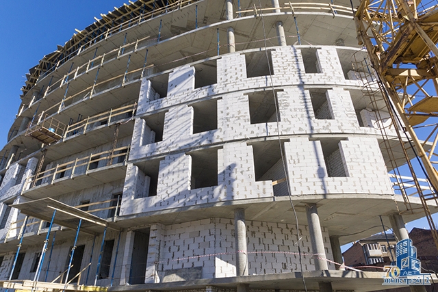 Каменщики выполнили более половины объема работ по кладке наружных стен и внутренних перегородок на 4-м этаже.