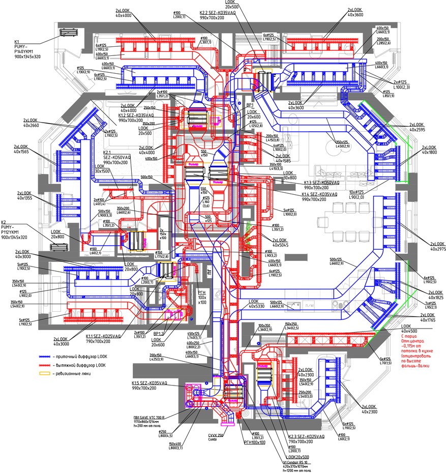 В качестве примера рассмотрим квартиру в ЖК PecherSKY Luxury Apartments, площадью 300 м2. Основные задачи заключались в реализации систем вентиляции, кондиционирования и пароувлажения.