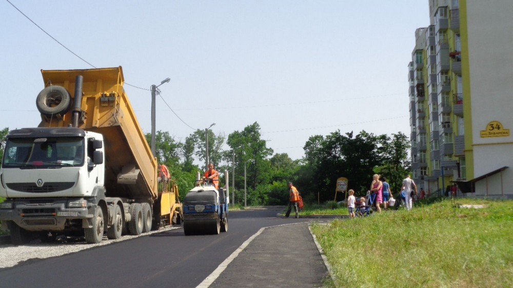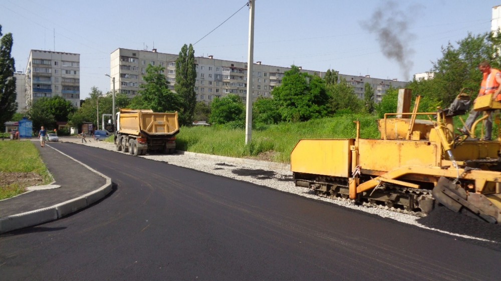 В данный момент полностью заасфальтированы пешеходные тротуары и ведется  укладка асфальта внутриквартальной подъездной дороги к жилому дому по тому  же адресу.