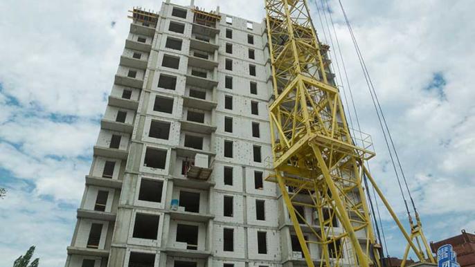 -В 1-й секции на 14-м этаже забетонированы вертикальные конструкции, выполнены две трети объема кладки наружных стен.