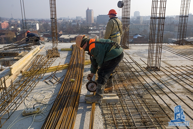 Строители СМУ-21 ОДО «Жилстрой-2» выполнили работы по устройству перекрытия над 8-м этажом. На 9-м этаже бетонируются колонны, начата кладка наружных стен.