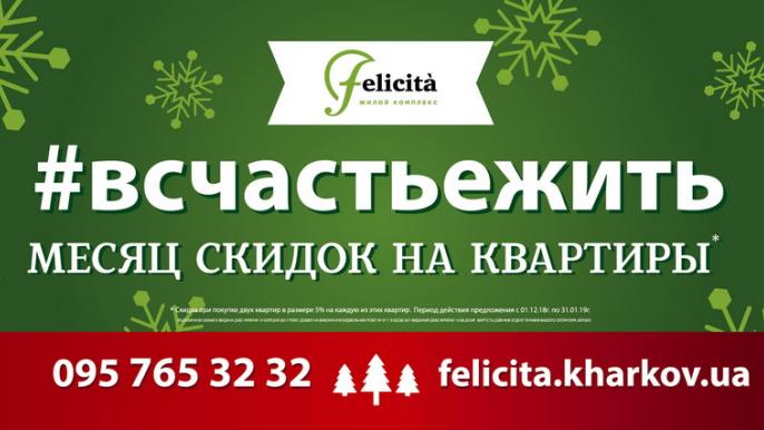 "Дорогие Друзья!  Всё ближе Новый Год, праздничное настроение всё больше охватывает нас, хочется подарков и приятных моментов!  Подарок, который будет по достоинству оценён, которому будут рады и СЧАСТЛИВЫ ваши родные и близкие – квартира в новострое! На протяжении всего декабря в ЖК «Феличита» действует акция #ВСЧАСТЬЕЖИТЬ  — месяц скидок на квартиры" - сообщили СтройОбзору в компании Жилстрой-3.