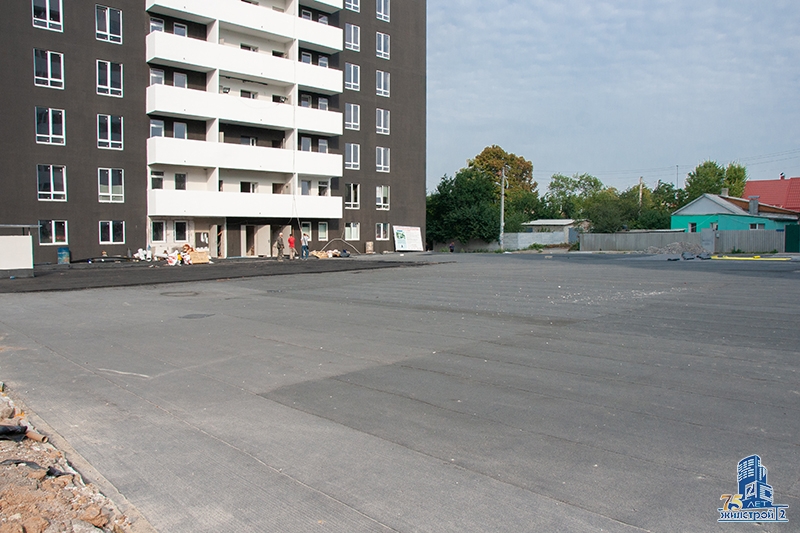 - Завершаются работы по гидроизоляции эксплуатируемой кровли паркинга. Специалисты дорожного участка приступили к асфальтированию кровли паркинга.