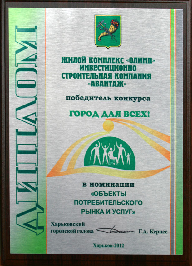 Жилой комплекс «Олимп», единственный из харьковских жилых домов, удовлетворил всем предъявленным требованиям и был безоговорочно признан победителем конкурса.