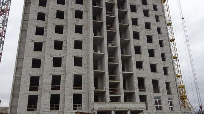 ЖК «Млечный путь» выполняется кирпичная кладка 10-го этажа