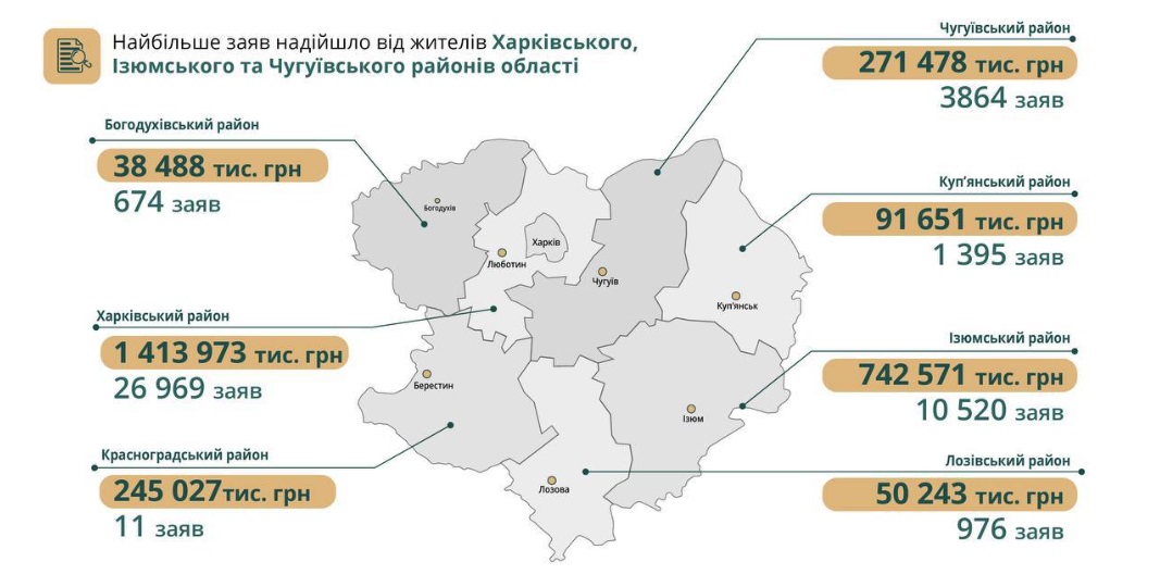 Житловими сертифікатами скористалися 1242 отримувачі компенсації, більшість із яких придбали житло в Харкові, Ізюмській та Чугуївській територіальних громадах.