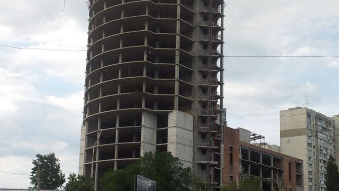 Украинский флаг который  активисты повесили  в Харькове на БЦ Ковчег по ул. Клочковской - спалили