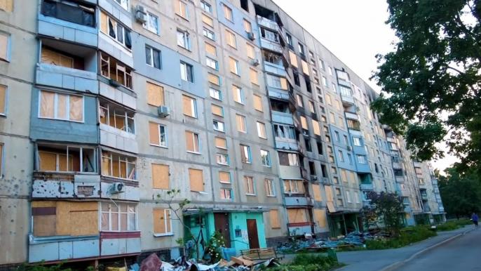 Дом на Бучмы 36 пострадал в 2022 году в результате вражеских обстрелов. Дом горел, в доме было много попаданий. Кое-где люди за свой счет поставили окна