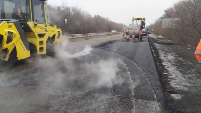 На найбільш зруйнованих ділянках дорожнього полотна на трасі М-03 Київ – Харків – Довжанський міняють шар асфальтобетонного покриття. Роботи розпочалися 24 лютого.