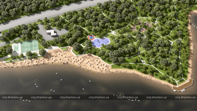 В рамках реконструкции на территории зеленой зоны (площадью 180 га) планируется обустройство пляжных зон и зон отдыха, установка спортивных и детских площадок, расчистка русла реки Харьков, реконструкция гребного канала, обустройство мест для занятий водными видами спорта и почти 11 км велодорожек.