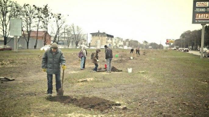 Кернес рубит - харьковчане сажают: В Харькове провели акцию “Посади дерево - спаси Московский проспект”