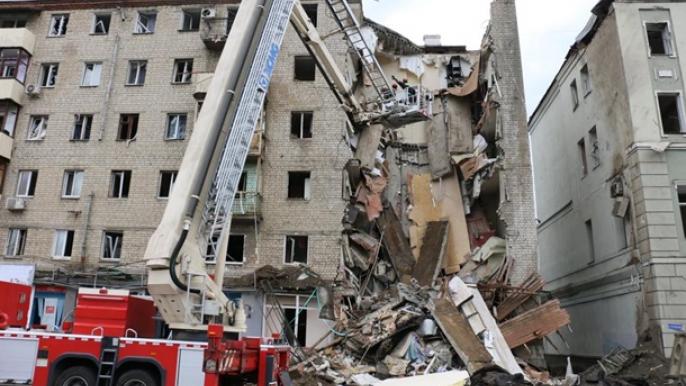 Будинок на Героїв Праці постраждав від російських ракет у квітні 2022 року. Відновлення будинку розпочалося у січні 2023 року.