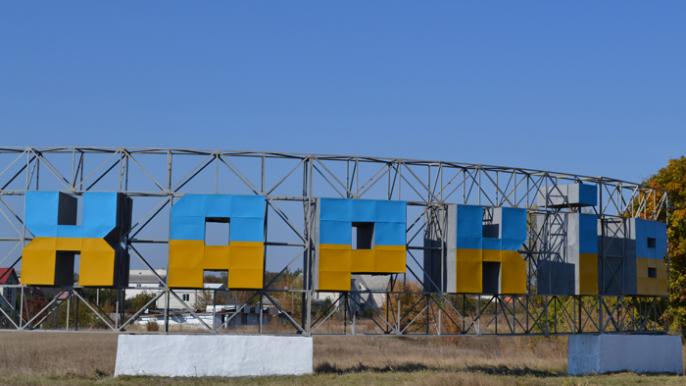 Харьков – это Украина: Трехметровый указатель «Харьков» раскрасили в цвета украинского флага