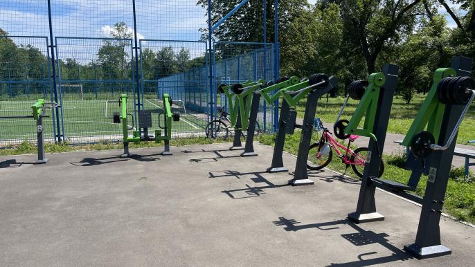 В 2021 году, парк Маяковского на ХТЗ частично реконструировали. Тогда построили футбольное поле и установили качественные городские тренажеры.