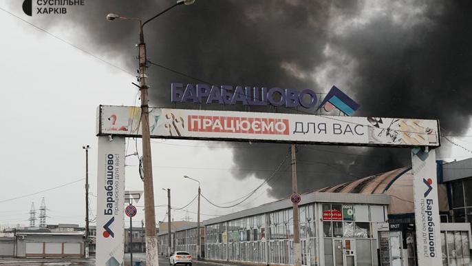 ▪️ Пожежа на ринку — Барабашово після останнього удару БпЛА.