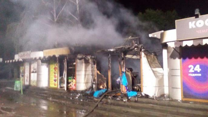 "Площадь пожара составила 80 кв.м. Он развивался очень быстро благодаря горючим элементам внутренней отделки киосков. Огонь потушили в 4.29", - говорится в сообщении.