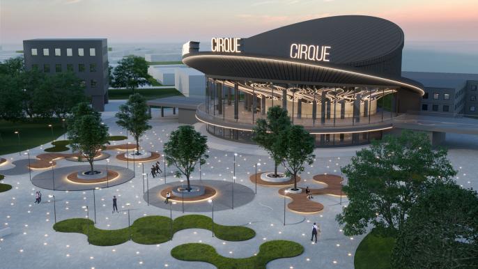 На визуализации видно, что обновить освещение предлагается на самом здании (в частности, и со сменой надписи), а также обновить площадку перед цирком.