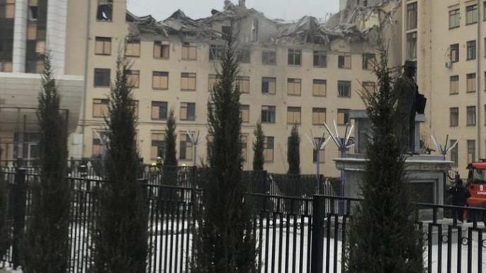 Друга ракета влучила  у Академію міського господарства та завдала серйозні руйнації. Відео