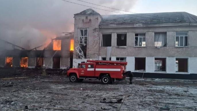 После ночного обстрела здание школы обвалилось и начался пожар. Его площадь составила около 400 кв. м.