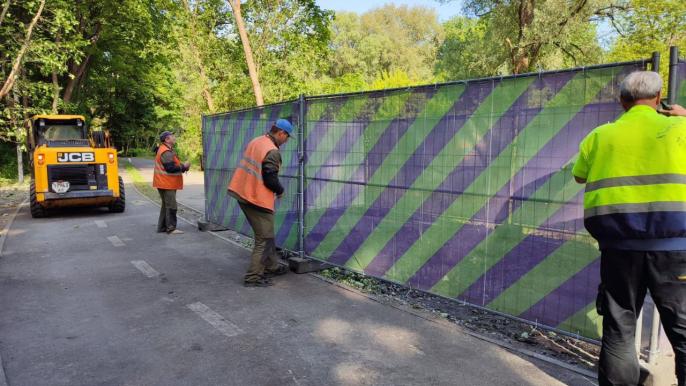Сотрудники "зеленстроя" убрали мусор и огородили место "прилета" забором. В дальнейшем дорожку обновят, специалисты уже работают в этом направлении.