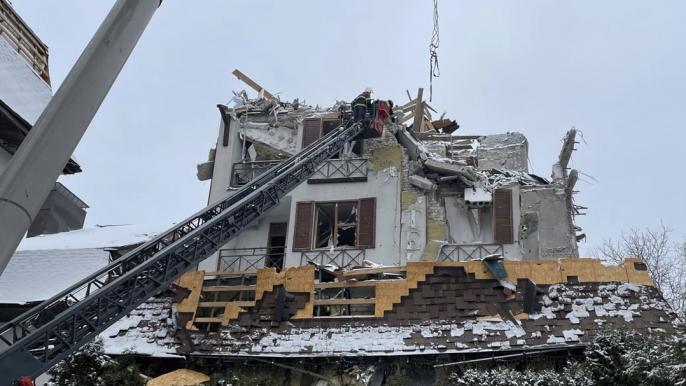 Рятувальники демонтують пошкоджений корпус готеля Park Hotel, на Шевченка 79, у якій влучила ракета  10 січня
