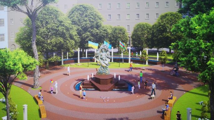Скульптуры данных исторических личностей не случайны, Сквер Мыслителей символизирует дружеские отношения между Украиной, Казахстаном и Азербайджаном.