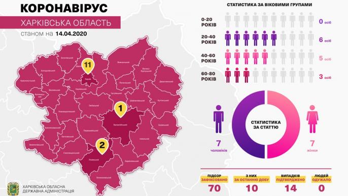 Среди подтвержденных случаев - семеро мужчин и семеро женщин. Одиннадцать из четырнадцати пациентов - жители Харькова, двое - жители Лозовой, один - житель Балаклеи.