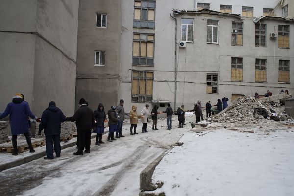 После февральского удара 2025 года по корпусу на Сумской было выбито 150 окон. На улице –16°C. Люди снова пришли помогать: преподаватели, студенты, сотрудники, даже те, кто не имел отношения к зданию. За день все окна были закрыты фанерой, убрано стекло.