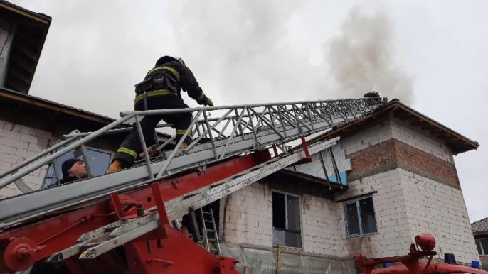 В Основянском районе Харькова горит двухэтажное нежилое здание, спасатели ликвидируют пожар.