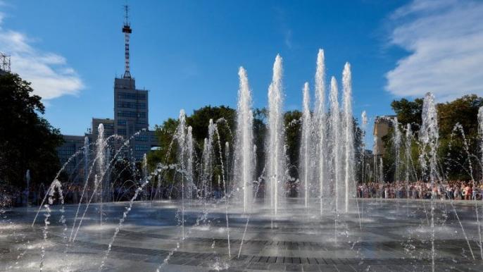 На площади Свободы в Харькове открыли новый фонтан и обновленный сквер.