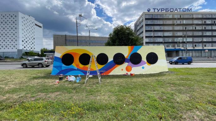 Известная харьковская художница-муралистка и преподавательница Харьковской государственной академии дизайна и искусств Анастасия Худякова превратила техническое сооружение возле станции метро «Турбоатом» в яркий арт-объект.