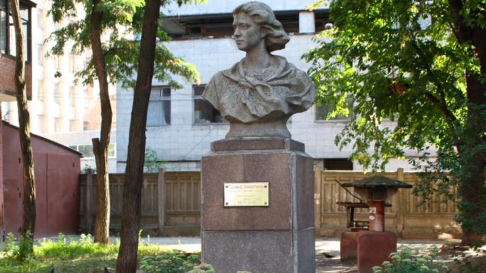 Пам'ятник члену підпільного обкому комсомолу України у другій світовій війні Галині Нікітіній встановлено у дворі будівлі на вулиці Мироносицька, 44
