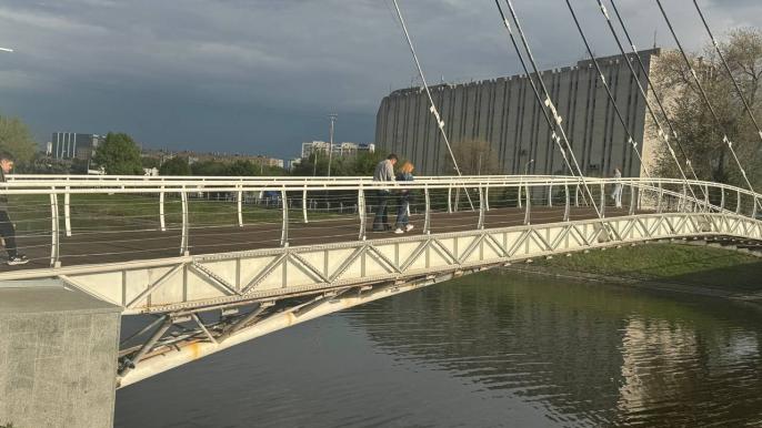 В сквере «Стрелка» с опозданием открыли подвесной мост после ремонта