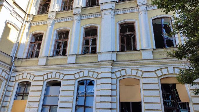 Внаслідок цього пошкоджено двоповерхове приміщення та будівлю закладу вищої освіти.